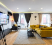 Living-ul este spațios și luminos, decorat cu mobilier modern și confortabil, care adaugă o notă de eleganță în fiecare colț. O canapea generoasă, tapițată cu un material textil moale , aducând un strop de personalitate în încăpere. Alături, o masă de cafea ,completează zona de relaxare, oferind un spațiu perfect pentru conversații relaxante sau pentru a savura o ceașcă de cafea în liniște.