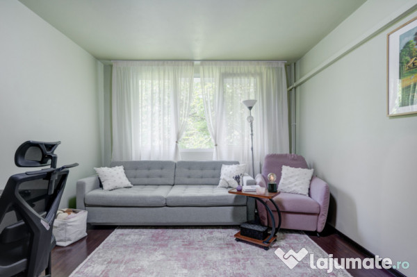 Este situat la etajul 3/4 al unui bloc cu mai multe scări, construit în 1974, și are vedere pe spate, spre o zonă liniștită și plină de pomi.