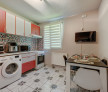 Apartamentul este decomandat, are o bucătărie pătrată și spațioasă, cu loc de luat masa, dormitorul și sufrageria sunt foarte plăcut și cald amenajate, iar pe hol este amplasat un dulap tip dressing foarte încăpător.