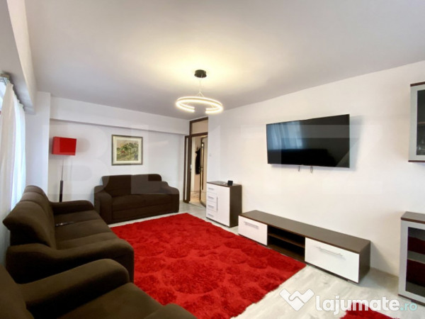 Apartamentul este pozitionat la etajul 7 al unui imobil cu 7 etaje avand o suprafata utila de 61 mp, este dotat cu frigider cu congelator side by side, plita cu inductie, hota, cuptor electric, masina de spalat vase, masina de spalat haine slim, 2 TV smart în fiecare cameră si aer conditionat, mobilul detine centrala termica proprie. Se inchiriaza complet mobilat si utilat. Este situat exact vis a vis de SIGMA cu toate punctele de interes la 50m cum ar fii LIDLE, stație bus , complex SIGMA, Acesta este Disponibil imediat.