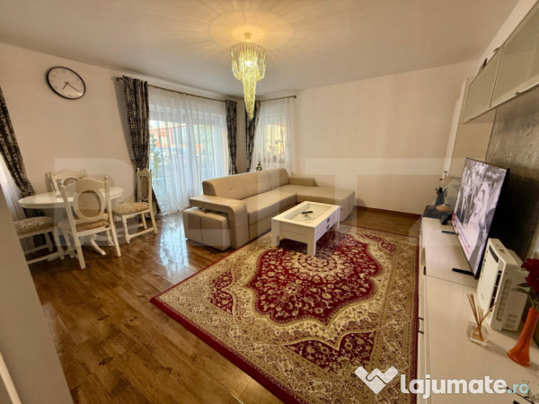 Imobilul este situat la parterul unui bloc din caramida, izolat termic la exterior, bloc situat la mica distanta de statia de autobuz(M21), magazine, grădiniță, farmacie, centru etc. Apartamentul dispune de centrala termica proprie, tamplarie PVC cu geamuri termopan, rulouri la toate geamurile, usa metalica la intrare si este compus din: hol, living open space cu bucatarie, dormitor, baie, balcon. si debara. Pentru mai multe detalii nu ezitati sa ne contactati.
