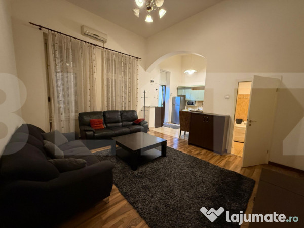 Apartamentul are 80 mp utili, este mobilat și utilat complet, cu încălzire prin centrală proprie pe gaz și conductă de apă separată față de restul clădirii – un detaliu important care asigură independență și control asupra consumului.