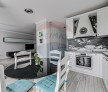 Zona de zi este formată dintr-un living spațios, cu zonă de relaxare și loc de luat masa. Bucătăria este complet mobilată și utilată, inclusiv cu mașină de spălat vase, și are acces direct către o terasă de 25 mp, ideală pentru momentele de relaxare.