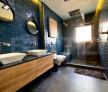 Baia principală, de 6,65 mp, este modernă și foarte bine dotată, cu echipamente de calitate de la Grohe, Kludi și Geberit, încălzire în pardoseală, fereastră pentru lumină naturală și ventilație, două chiuvete, două oglinzi, mult spațiu de depozitare și un walk-in shower spațios care include și un loc de relaxare.