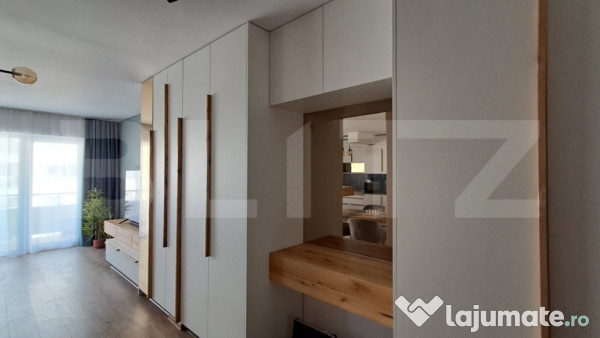 Blitz va prezinta un apartament modern și complet utilat, disponibil spre închiriere, situat într-o zonă liniștită și accesibilă, ideal pentru cupluri sau persoane care apreciază confortul și tehnologia. Locuința are o suprafață utilă de 57.21 mp și este compartimentată eficient: living cu bucătărie open-space, dormitor spațios, baie și nu mai puțin de trei balcoane, însumând 18.43 mp, perfecte pentru relaxare, depozitare sau amenajare tematică. Apartamentul este mobilat complet cu mobilier modern și electrocasnice premium, incluzând mașină de spălat rufe cu uscător, mașină de spălat vase, cuptor electric și plită pe inducție, combină frigorifică și frigider pentru vin, precum și Smart TV-uri Samsung de 163 cm și 94 cm, alături de soundbar.