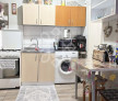 It measures a usable area of 29 square meters and consists of a room, kitchen, bathroom with shower. In addition to the usable area, the owners have arranged 2 rooms on the mezzanine, on a wooden structure.