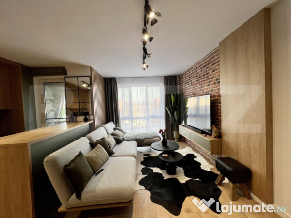 Apartamentul se afla intr-unul din cele mai noi ansambluri rezidentiale, fiind finalizat doar anul trecut, cu numeroase spatii verzi frumos amenajate de catre profesionisti. Apartamentul se preda conform fotografiilor, mobilat si utilat complet, ceea ce inseamna un extra confort, pentru cei care doresc sa se mute in noua casa imediat.