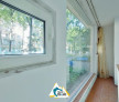 – geam vitrat în sufragerie cu vedere directă spre parc, cu multă lumină naturală și un cadru de poveste.