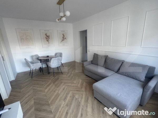 Blitz va prezinta un apartament de vanzare, semidecomandat cu loc de parcare. Apartamentul se preda mobilat si utilat, este amplasat intr-un bloc din caramida izolat termic la exterior, dispune de centrala termica proprie, tamplarie PVC cu geam termopan si este compus din: hol, bucatarie(inchisa separat), living, dormitor, baie si balcon. Locul de parcare este optinal si se poate achizitiona la pretul de 6.000 euro. Pentru mai multe detalii nu ezitati sa ne contactati.