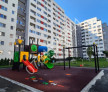Parc cu alei inverzite in interiorul complexului realizat de arhitecti peisagisti,pomi,bancii, 2 locuri de joaca pentru copii cu suprafata tartan ,sistem de irigatie profesional cu aspersoare.