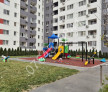 Parc cu alei inverzite in interiorul complexului realizat de arhitecti peisagisti,pomi,bancii,loc de joaca pentru copii cu suprafata tartan ,sistem de irgatie profesional cu aspersoare.