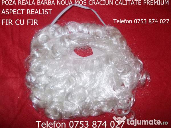 Anuntul e valabil, va rugam telefonați la Zero Sapte Cinci Trei 874 027, deoarece nu citim mesajele trimise de pe acest sait, vindem la Bucuresti nu expediem in alte localitati, la pret real si fix 5 Lei pacheul nou sigilat cu barba alba Mos Craciun,, EXACT MODELUL DIN POZELE REALE DE BARBA FRUMOASA ELEGANTA CALITATE PREMIUM SI ASPECT REALISTIC, model de barba si mustata tip fir cu fir MATASOS si STRALUCITOR, pentru adulti dar sunt potrivite si pentru copii la serbare datorita sistemului de prindere cu elastic, ce se adapteaza si se fixeaza rapid si usor dupa urechi, pret real si fix 5 Lei barba cu mustata noua sigilata in pachet, sunt disponibile mai multe pachete noi sigilate cu barba si mustata.