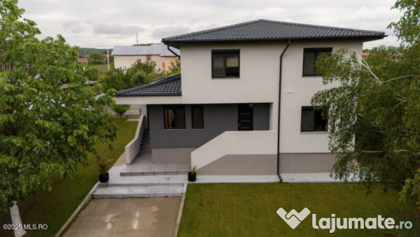 BASCOV - LABUSESTI, CASA P+E, GARAJ P+M, TEREN 809 MP. Situata intr-o zona minunata, pe o strada linistita cu case noi. O casa impresionanta prin design si prin finisajele cu materiale premium, mobilata si utilata elegant. Curte perfect amenajata, cu loc de joaca pentru copii. Interior cu decor deosebit, dormitor la parter, living, dining cu perete culisant, bucatarie open-space, camera utilitati. La etaj: dormitor matrimonial cu baie proprie, 2 dormitoare si alta baie. Incalzire in pardoseala, panouri solare 8.5 kw.