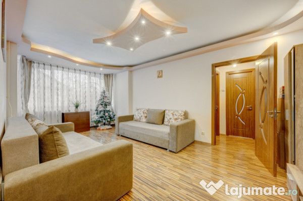 Dispune de 1 loc de parcare ADP in fata scarii, boxa la subsol si acces la uscatoria scarii, situata chiar langa apartament, la etajul 4.