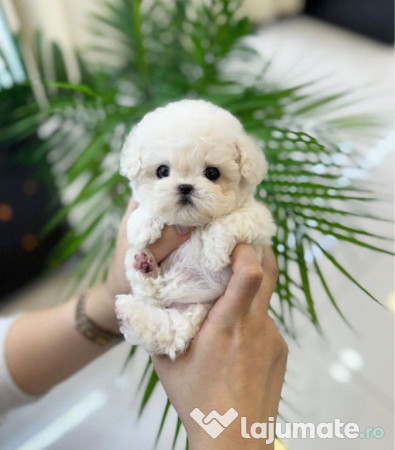 Bichon Frise Mini Toy pui superbi, crescuți în casă, în vârstă de 7 săptămâni. Sunt de talie mică, cu o blaniță pufoasă și temperament foarte afectuos.
