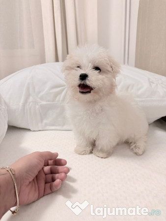 Bichon maltez alb 2 luni rasa pura perfect sanatos vaccinat si deparazitat mananca bobite uscate si hrana la plic