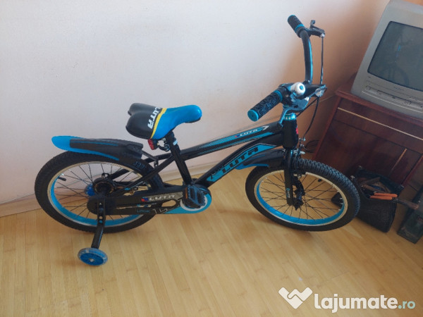 Vând bicicleta copii cu roti ajutătoare, foarte puțin folosită, în stare buna de funcționare.