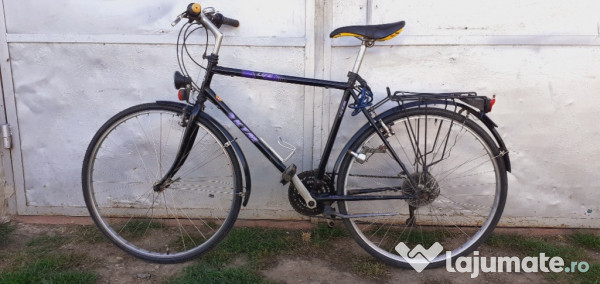 Frînele sunt și ele funcționabile.Roțile sunt de 28 inch.Plus o geantă cu tot cu butuc cu 5-7 viteze.E funcționabilă.Dar trebuie remediată o mică