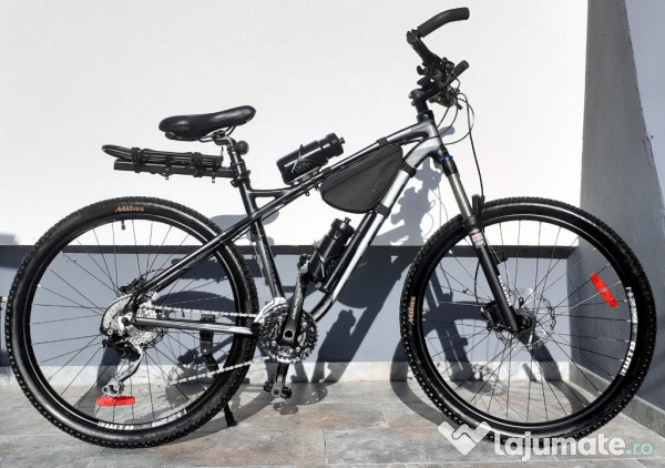 Accesorii incluse in pret, cumparate pentru completare la momentul achizitiei bicicletei: ciclocomputer, sonerie, set lumini cu LED fata/spate, portbagaj, cric, extensii ghidon, geanta cadru, suport bidon, bidon, stopuri roata, manometru, chei tip briceag, pompa aer.