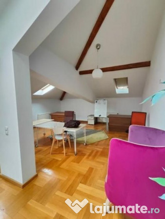 Spațiul se află la mansarda unei clădiri P+3+M și are o suprafață de aproximativ 80 mp, fiind compus din:
