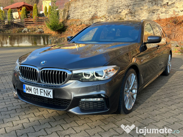 BMW Seria 5 G31 520d Touring, an 2018, echipat cu motor diesel 2.0 (B47) de 190 CP / 140 kW, normă Euro 6, transmisie automată și tracțiune spate. Modelul beneficiază de pachet M Sport interior + exterior(suspensie M, pachet aerodinamic, volan M din piele, plafon negru). Printre dotări se numără: