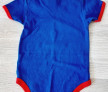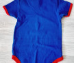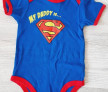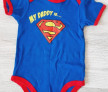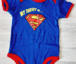 Lenjerie intima tip body, din bumbac, albastru si rosu cu imprimeu Superman si textul "MY DADDY IS...", cu maneci scurte si deschidere in partea de jos.