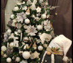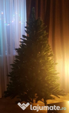 Brad artificial de Crăciun, 1,80m, cu crengi verzi cu vârfuri albe, în stare foarte bună.