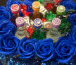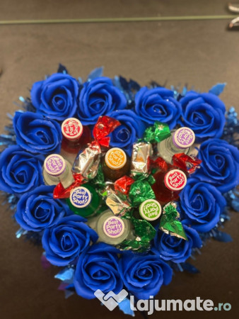 Buchet Party cu Trandafiri Albaștri și Shot-uri – Cadoul Perfect pentru Petrecăreți! ✨
