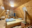 Etaj: un open-space generos, cu capacitate de cazare pentru aproximativ 10 persoane, perfect pentru grupuri sau familii. De aici ai acces la două balcoane cu priveliști superbe către pădure și dealuri.