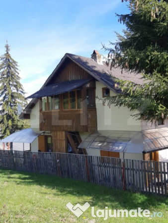 Blitz ofera spre vânzare o cabană de vacanță pe două nivele, situată într-o locație de vis, în Piatra Fântânele, un loc ideal pentru relaxare și escapade în natură. Cabana este construită din lemn, având un design tradițional și rustic, dar în același timp fiind modernă și confortabilă.