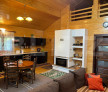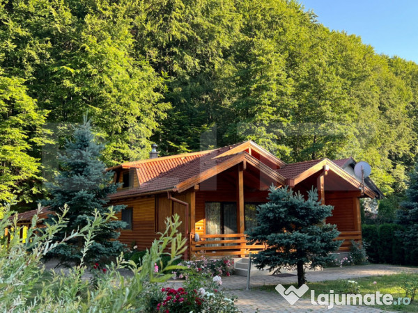 Cabana este ridicată pe fundație de beton, cu structură din lemn foarte bine izolată. Dispune de ferestre termopan, acoperiș din țiglă, două terase spațioase și o zonă acoperită unde pot fi parcate două mașini.
