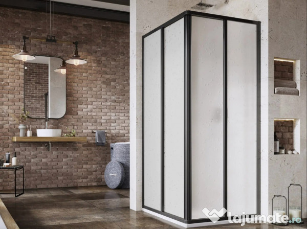 Cabină de duș NOUA! Ravak Supernova (SRV2+SRV2) 80x80 cm, neagră/Pearl, cu fisuri fine.