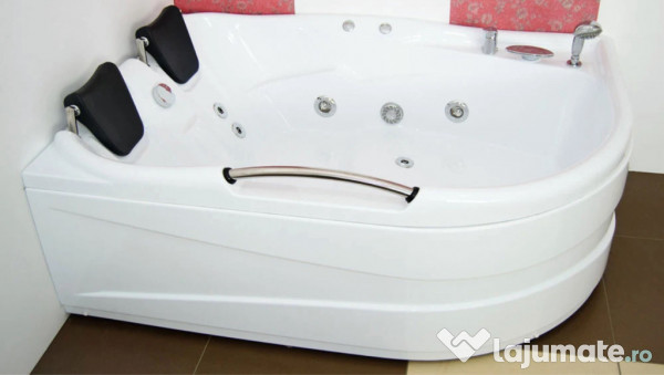 Cadă de baie pentru 2 persoane, cu hidromasaj. Cadă modernă, ergonomică, echipată cu funcție de hidromasaj pentru o experiență de relaxare. Ideală pentru spațiile de baie spațioase.