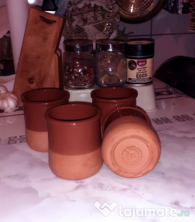 Setul de 4 căni ceramice de culoare maro deschis este perfect pentru a servi iaurt, deserturi sau băuturi calde. Aceste căni au o formă clasică și sunt fabricate din ceramica, conferind o notă rustică și elegantă spațiului tău. Sunt ideale pentru a fi folosite în bucătărie sau în living, adăugând o notă de stil și căldură ambientului.