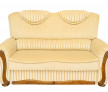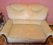 Vând canapea 2 locuri, realizată la comandă, într-un ton cald de crem, cu tapițerie rezistentă și model discret. Designul clasic este completat de detalii frumoase din lemn masiv, vizibile la picioare și la brațe.