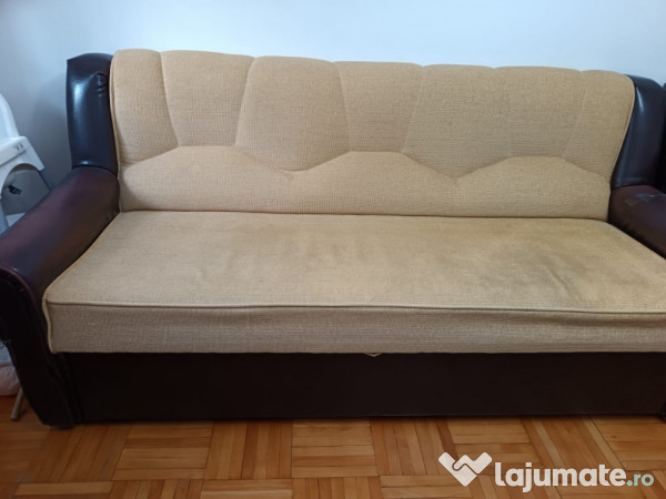 canapea de 3 locuri si 2 fotolii canapeaua este extensibila si fotoliile sunt fixe si au lădițe pt depozitare sunt in stare f bună bine întreținute si protejate curate
