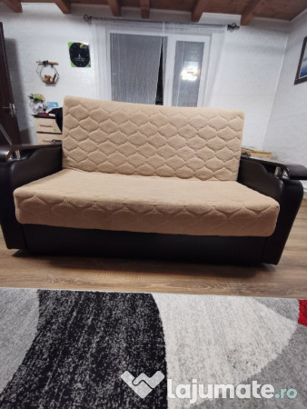 Canapea confortabilă cu funcție de pat, lada de depozitare încăpătoare, perfecta pentru spatii mici și potrivite ca mărime. Stare bună