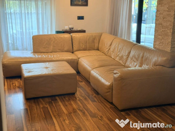 Vând canapea, taburet/masuta și 8 scaune din piele/ Mobexpert