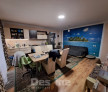 - ETAJ : living cu ieșire pe balcon și un mini SEMINEU , bucătărie OPEN SPACE, 2 dormitoare și baie cu GEAM