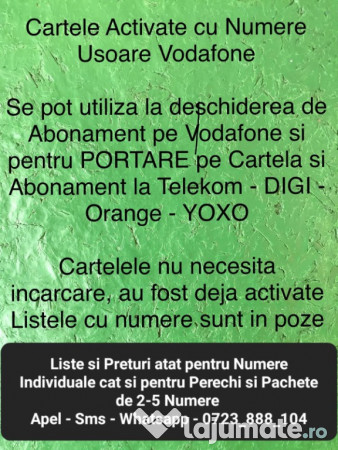 Cartele Activate cu Numere Usoare Vodafone.