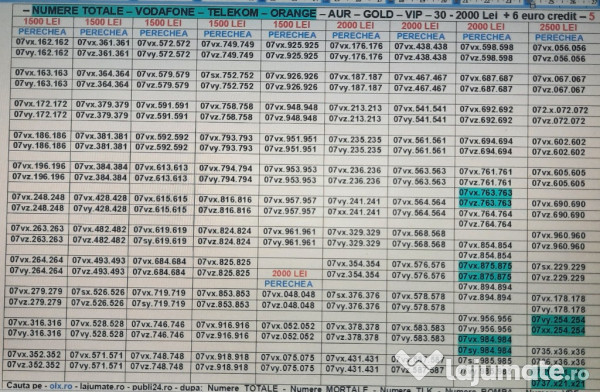Vand Perechi de Numere IDENTICE - Vodafone-Vodafone... Telekom-Telekom... Vodafone-Telekom si Vodafone-Orange.