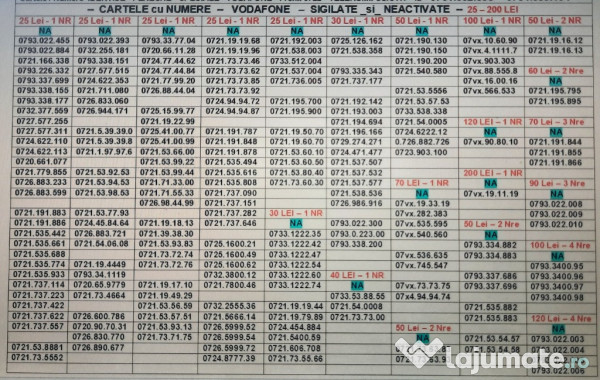 Vând Cartele Sim Vodafone - Noi, Sigilate, Neactivate - cu Numere Usor de Retinut.
