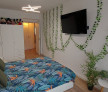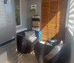 - balcon inchis dotat cu mobilier Mobexpert ideal de servit cafeaua dimineata cu intrare din bucatarie si din dormitor;