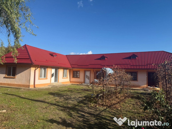 Casa este nelocuita, construita din BCA, acoperita cu tigla Elpreco si tabla tip Lindab si este compartimentata astfel: in primul corp avem 2 dormitoare spatioase si un hol. Cu intrare separata in celalalt corp avem un living foarte spatios, un dormitor semifinisat, bucataria, o baie generoasa complet utilata, inca un dormitor si un hol generos de unde aveti acces la toate incaperile. Curtea de 3300 mp, bogata in vegetatie, pomi fructiferi, vita de vie, ofera linistea deplina de care aveti nevoie si o priveliste de vis! Curtea este imprejmuita cu gard de beton, realizat cu simt de raspundere. De asemenea, proprietatea este prevazuta cu sistem de supraveghere video. Este o locatie buna pentru cei care cauta liniste si aer curat, proprietatea fiind in vecinatatea padurii.
