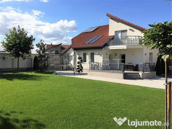 Casa se inchiriaza mobilate si utilata, bucataria fiind utilacomplet, modern, gama de electocasnice Bosch de ultima generatie, frigider vinuri, expresor cafea.