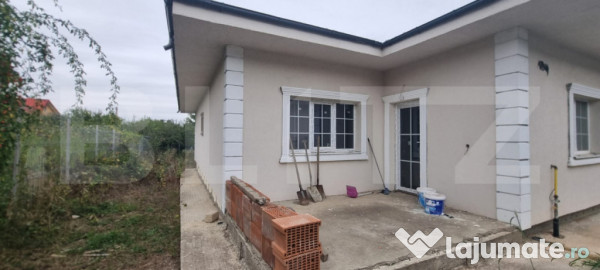 Casa: -Doua Dormitoare, doua bai, Living deschis cu hol