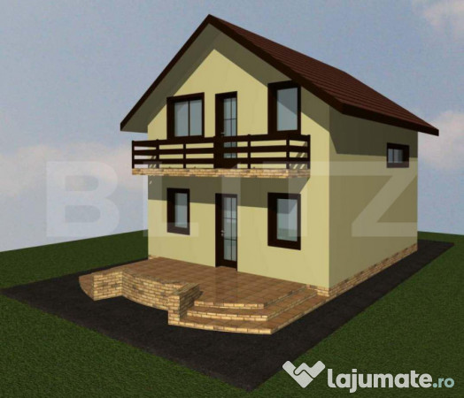 Este o casa simpla, moderna, cu semineu in Living si bucatarie open space care la nevoie se poate inchide. Dormitoarele ofera o panorama superba asupra dealurilor din preajma. Este o casa pozitionata foarte bine fata de drumul judetean. Este o alternativa sanatoasa la un apartament in oras si care ofera tot confortul unei case.