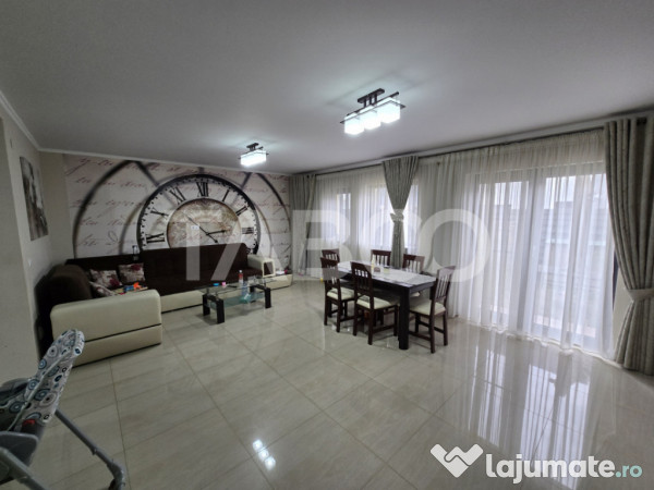Incalzirea casei se realizeaza prin centrala propie + incalzire in pardoseala, casa este izolata termic. Se vinde mobilata si utilata, iar finisajele interioare sunt moderne, cu usa de termopan la intrare, usi din lemn la interior, ferestre din pvc cu termopan, podele cu parchet si gresie, iar peretii cu vopsea lavabila si faianta, curent electric, gaz, canalizare, contorizare separata, frigider, masina de spalat rufe, masina de spalat vase, cuptor, hota, cafetiera.