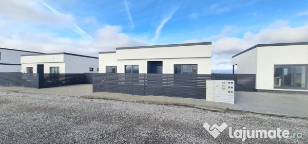 - dotari: pompa de caldura aer-apa 8kw Ferolli, incalzire in pardoseala pentru confort sporit, ferestre de tip termopan marca Salamander profil blueEvolution 82 (cu 3 foi de sticla si 5 camere, feronerie Roto, 3 garnituri), bai mobilate si utilate, parchet, gresie, faianta, apa, curent electric, fosa septica individuala capacitate 1,500 litri cu furtun de drenaj de 10m..