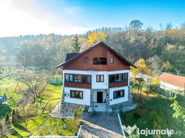 Casa beneficiaza de mult spațiu verde, aer curat si un peisaj superb.